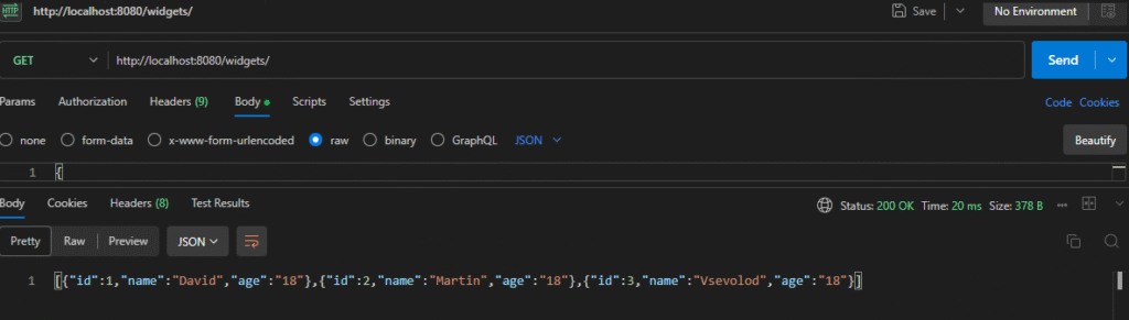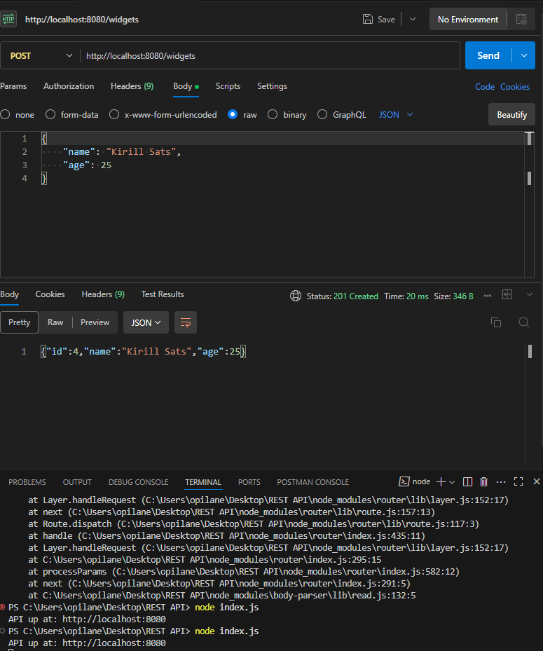 Kõik kasutatud päringud töötavad ( GET, POST, DELETE )