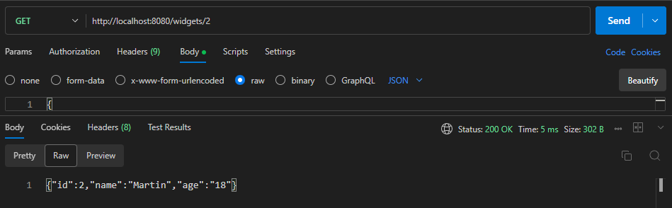 Loome GET’i päring andmete widget’i näitamiseks valitud id